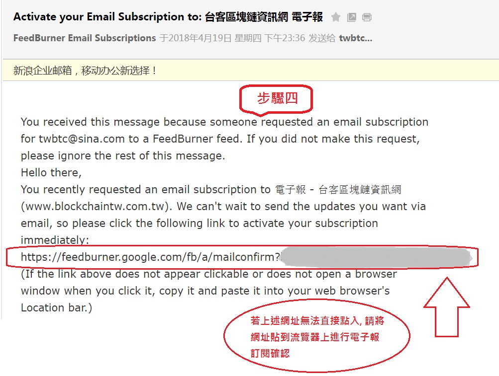 步驟4: 在您的通知信里,將會提供您一行網址需進行驗證(如下圖紅色框)